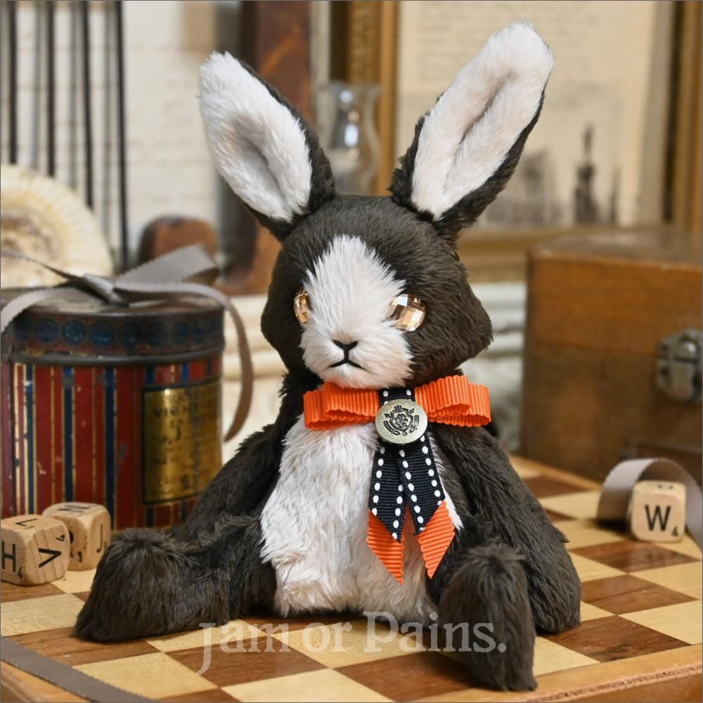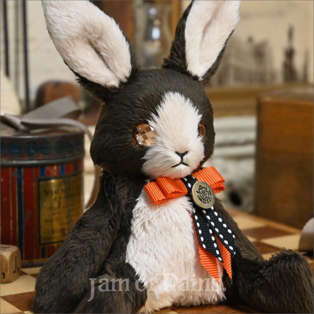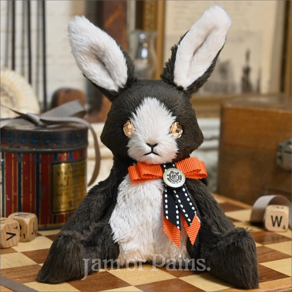 チョコレートカラー(ブラウン×エクリュ)のハチワレ兎。