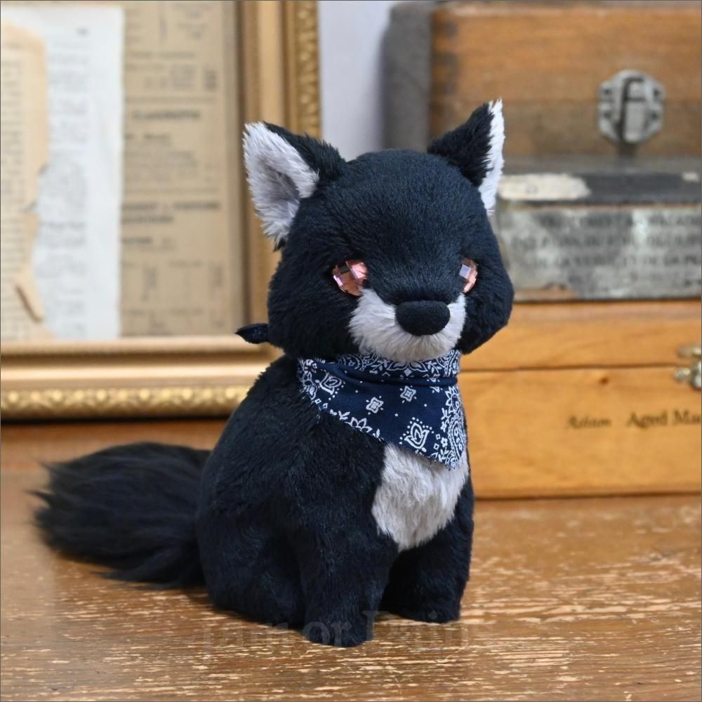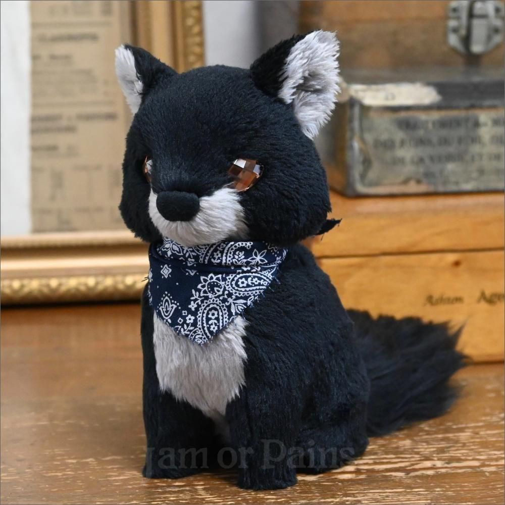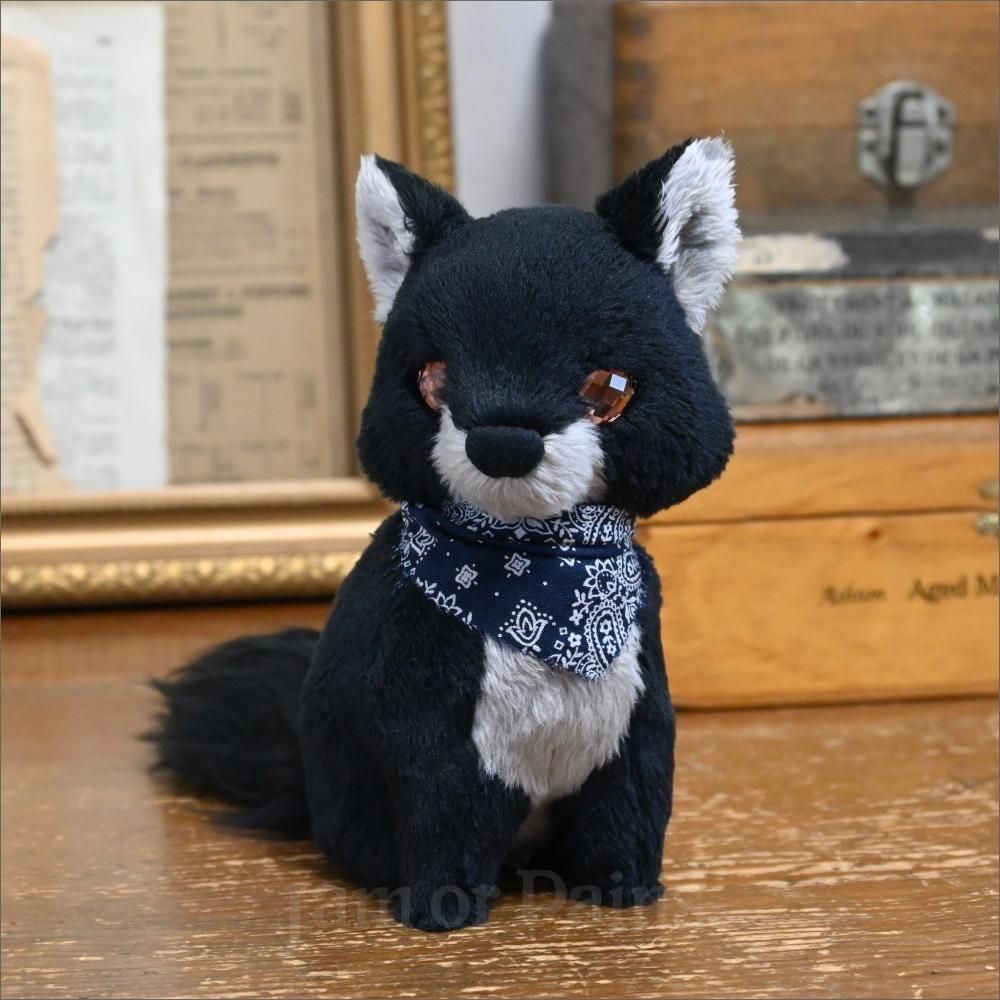 ネイビーのバンダナ。(着脱可/柄は個体によって異なります)